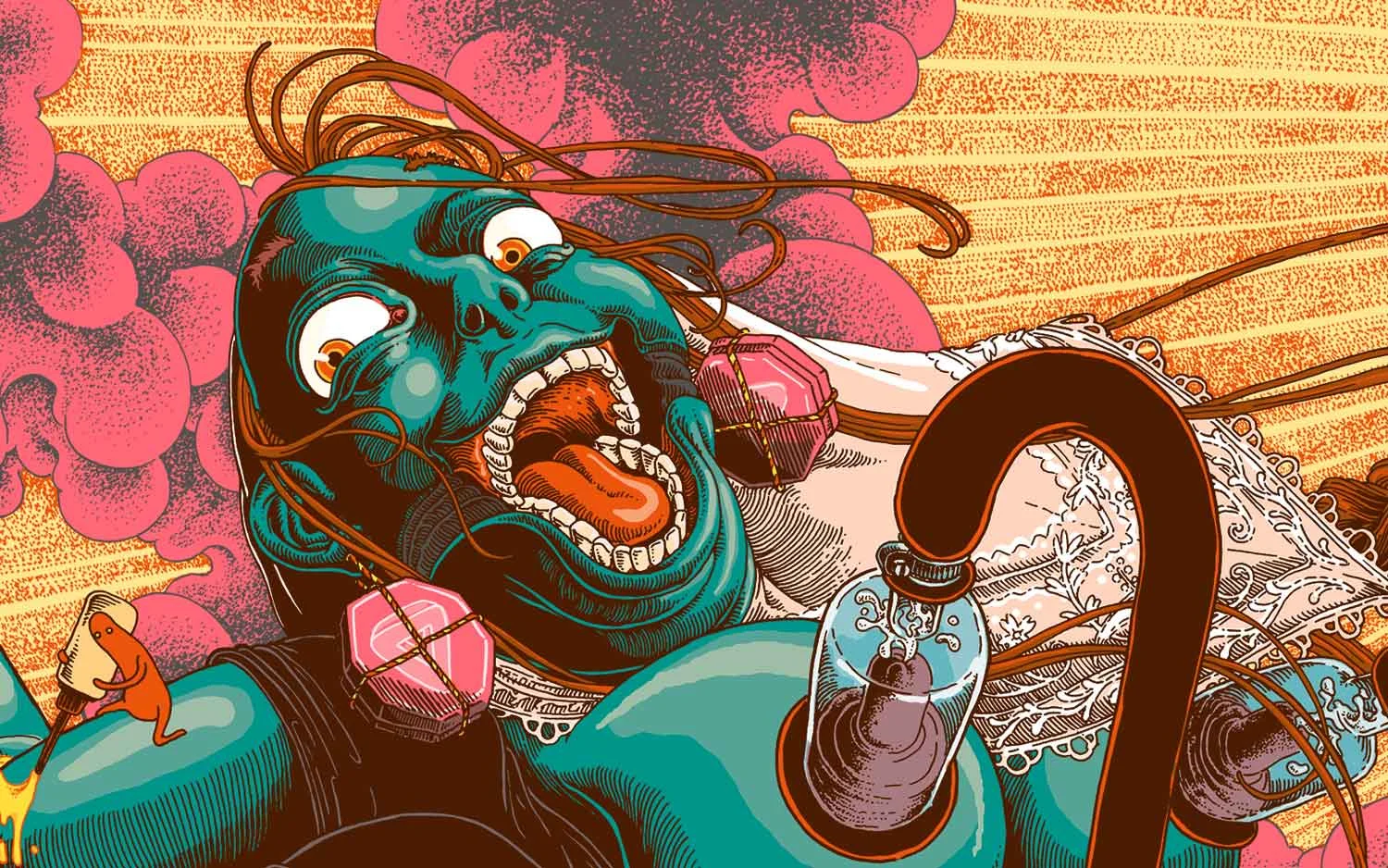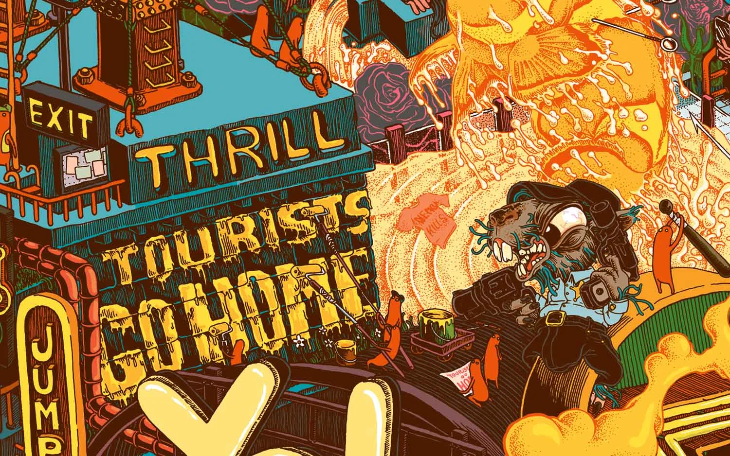 Giant narrative drawing about the tourism industry in my homeland, Mallorca. Done between Palma and London, it establishes a dialogue between workers and consumers, locals and visitors, colonizers and natives in an excessive, delirious and humorous graphic extravaganza.